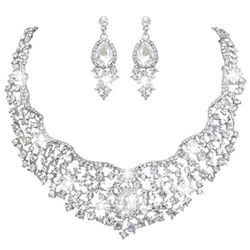 EVER FAITH Bridal Cluster Flower Teardrop Clear Austrian Crystal Necklace Earrings Set A06912-8