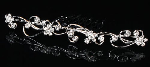 Rhinestone Floral Design Silver Hair Comb for Wedding, Prom or Special Occassion